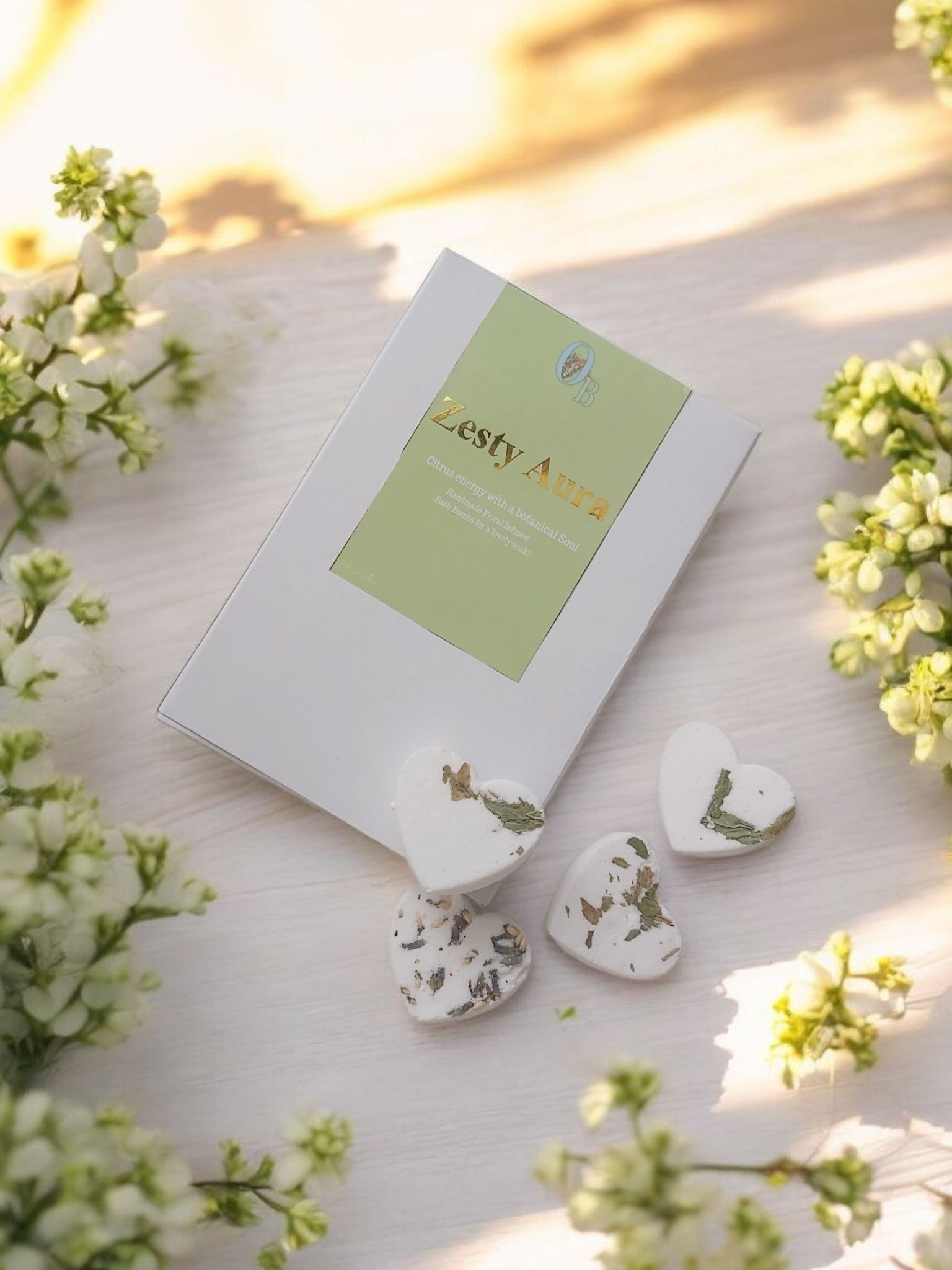 Indulge in a luxurious bathing experience with our Zesty Aura mini bath bombs, crafted by hand using pure essential oils, shea butter, vitamin E, and sunflower seed oil. These nourishing, moisturising, and hydrating bombs gently soften your skin while you relax in a soothing blooming soak.